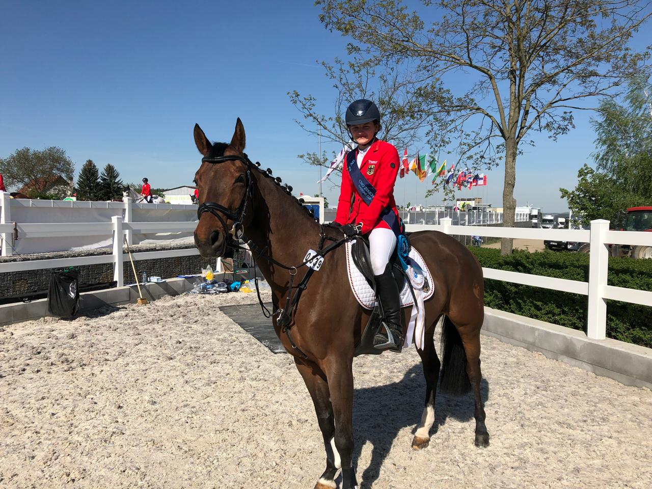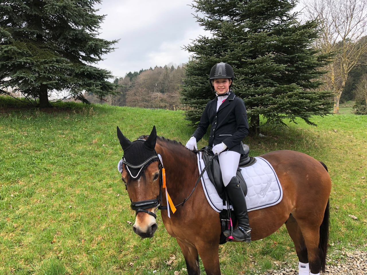 Für die Elfjährige ist dies wohl ihr bisher größter Erfolg. Seit zwei Jahren ist der Ponywallach im Besitz der Familie. Bereits im letzten Jahr starteten Ciara und Dustin bei einigen Turnieren. In dieser Saison können sie nun schon einige Siege und Platzierungen vorweisen und gewannen gleich beim darauffolgenden Turnier in Sigmaringen die Dressurprüfung der Klasse A.